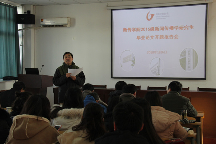 1月6日,德赢AC米兰合作伙伴2016级新闻传播学专业学位硕士研究生学位论文开题报告会在学院楼四楼会议室和505教室举行。报告会开始之前德赢AC米兰合作伙伴副院长、新闻传播学学位点负责人沈正赋就开题报告会的内容、意义等方面作了简单介绍。新闻传播学导师担任本次开题报告会的评委,2017级新闻传播学研究生参与了旁听。