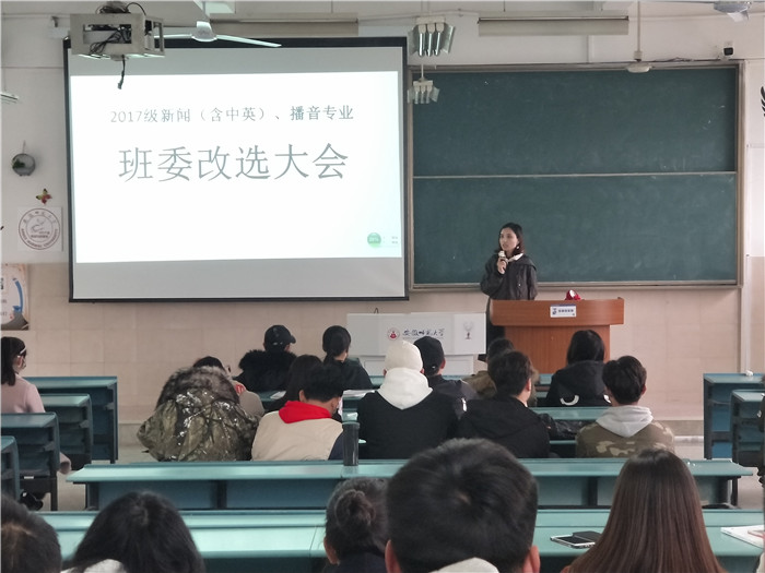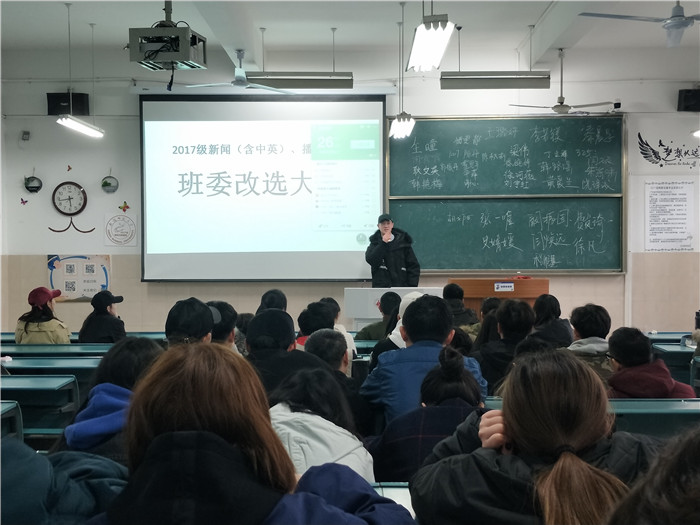 为了更好地进行班级建设,包容在多元化大学生活中同学们的多元选择,促进新闻、播音班同学们的全面发展。3月16日下午,2017级新闻、播音专业班委改选大会于2050302教室召开。会议由17级新闻、播音专业辅导员张虹老师主持,新闻班、播音班全体成员共同参加。