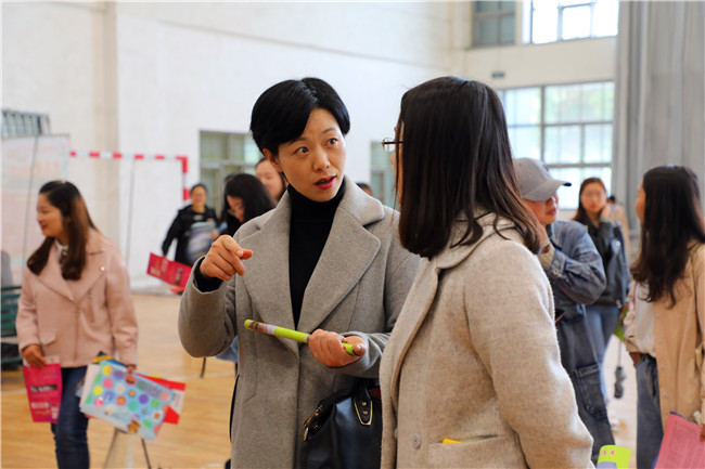 会场门口张贴着各区域的单位分布图,进入会场后适时出现的场地区域分布图,也详细地介绍了会场的分区。现场汇集了全省各大中小学校、民办学校、知名教育机构,各个单位的广告牌前都聚集着手拿宣传单的学生,或张望,或讨论。招聘的老师们详细地介绍了单位的试用期、实习薪资、住宿条件、岗位任职等情况。“我们看重学生的学习能力,如果是学科老师的话我们会更注重他的学历,管培的话我们比较在意的是他的学习能力,市场的话我们就更注重灵活性和个人能力。”一位培训中心的老师如是说。本场招聘会是直面师范类毕业生的特殊窗口,给了师范生一个施展自己的平台。据了解,部分单位不仅招收师范类毕业生,对有教师资格证的非师范毕业生也会给予机会,进行考核后择优录取。