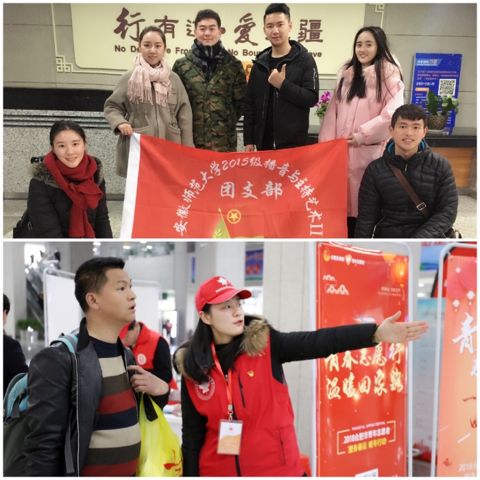 另外,我院2015级空乘专业团支部在寒假期间穿上红色小马甲出现在合肥高铁站,参加合肥市的春运“暖冬行动”志愿服务,他们几乎每时每刻都是站着,重复几千遍地挥动手臂为旅客指明方向,同时他们还要担任起为旅客们搬运重大行李、劝导旅客文明出行、维护站台秩序和应急救援的工作。2016级广告学、2016级新闻学、2017级新闻学等班级同样积极开展了爱心义卖、探访孤寡老人、铲雪除冰等志愿活动。就是这样一群师大的新传学子,从细微处入手,用自身的行动和温情为这个冬天增添暖意。