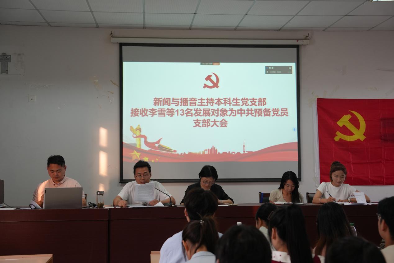 6月4日下午,新闻与播音主持本科生党支部在学院四楼大会议室召开接收发展对象支部大会,讨论接收李雪等13名发展对象为中共预备党员相关事宜。德赢AC米兰合作伙伴执行院长马梅、支部全体成员参加会议,会议由支部书记马星宇主持。