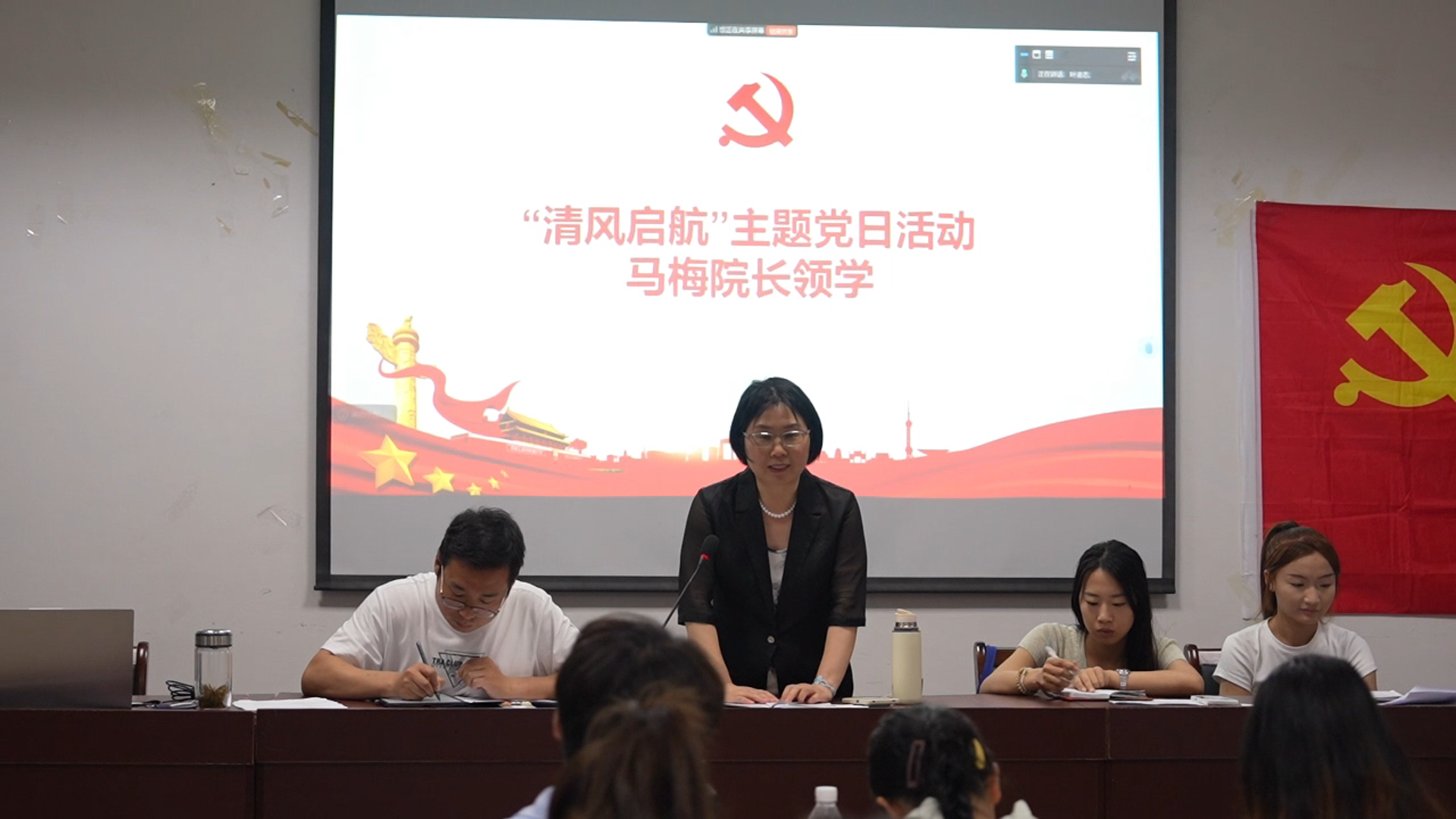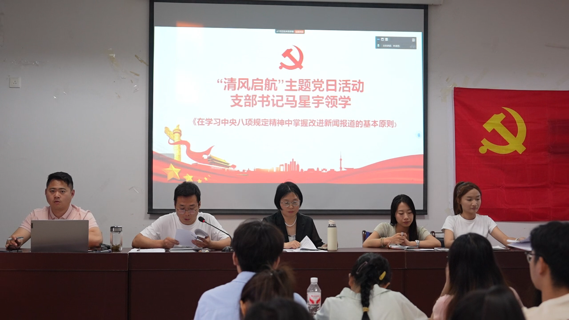 6月4日晚,新闻与播音主持本科生党支部在学院四楼会议室开展深入贯彻中央八项规定精神学习教育主题党课。联系支部的学院党委副书记、执行院长马梅和党支部书记马星宇分别为支部成员讲课。