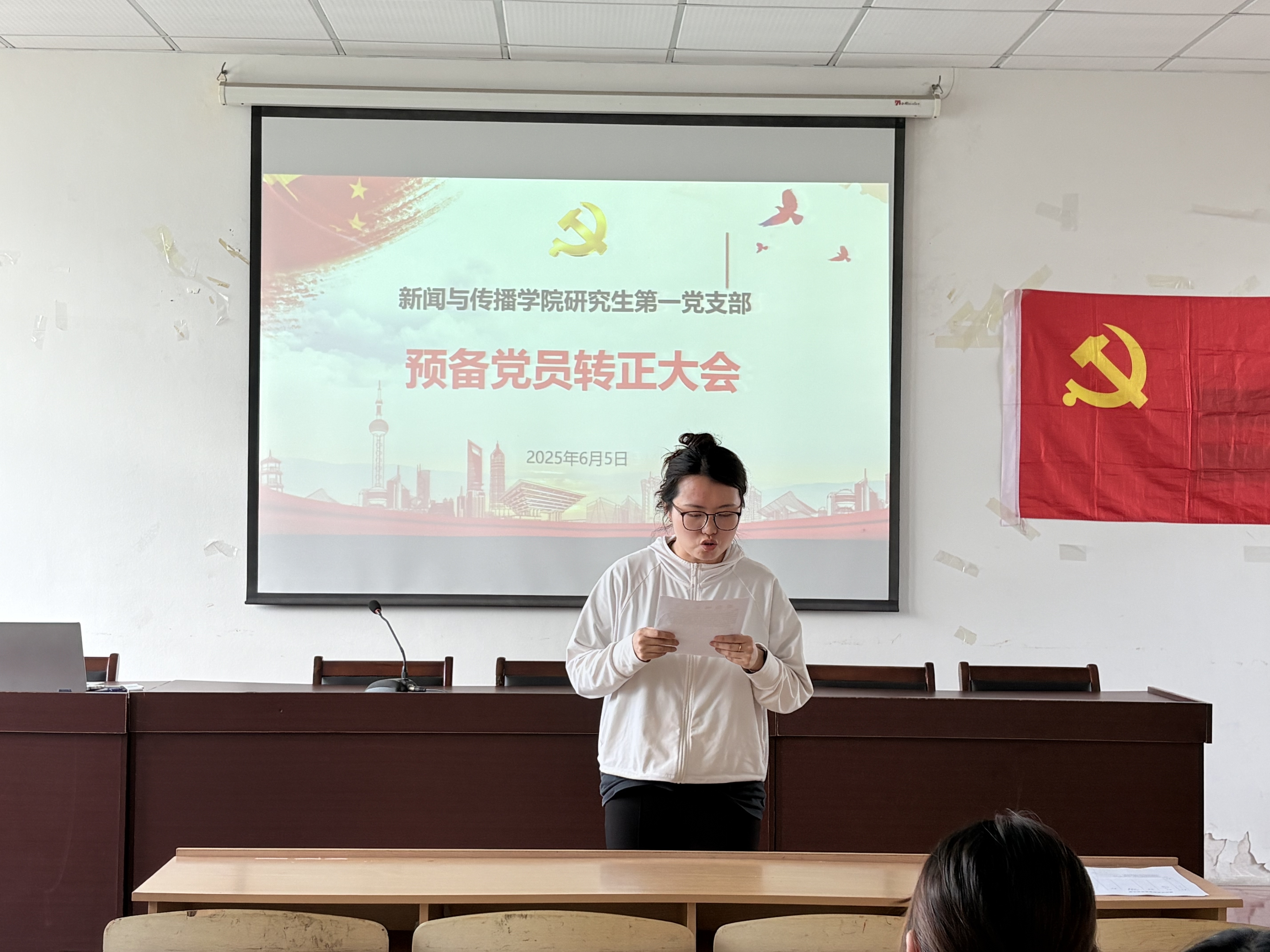 会议伊始,三位发展对象——2023级新闻与传播专业戈琰、张运薇和2024级戏剧与影视专业王竞搏结合自身经历和学习心得向在场党员陈述了自己的入党动机,章文宜和张亚宁作为培养联系人,分别向全体党员汇报了对发展对象的考察情况,两位联系人在肯定其表现的同时,也客观指出了需要改进的方面。随后与会党员也结合自身了解,对发展对象进行了全面评价。支部委员李润涵代表支部委员会报告了各发展对象的审查情况,全体正式党员对是否接收戈琰等3名发展对象为预备党员进行投票表决。最后经支部大会表决通过,决定接收戈琰、张运薇、王竞搏三位同志为中共预备党员,并将按程序报学院党委审批。