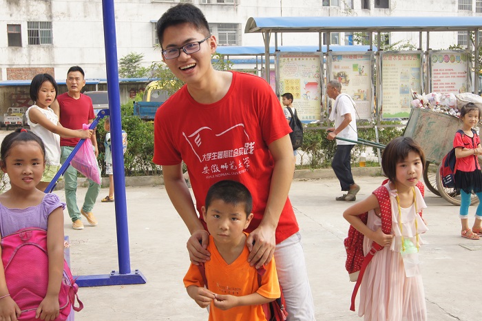 “公益是一项事业,是一份责任,更是一件有意义并充斥快乐的事!” 2015年,他跟随校重点团队赴阜南进行了为期半个月的志愿服务;2016年,他与二十余名志同道合的队员在松兹的土地上写下了他们心中的“宿愿”。短短的十几天里,刘成俊与其队友们联合宿松团县委及当地义工组织,开展志愿服务慰问群众;他们直奔前线,记录人民群众与子弟兵的众志成城;他们在三德村设立支教点,首次将“传媒素养普及培训班”这张社会实践特色名片落户农村,并将团队前期筹集到的近800册图书,全部捐献给当地孩子们;他们借助“安师大德赢AC米兰合作伙伴学生会”微信公众号进行社会募捐,几天之内共募集善款4273元,全部捐献给灾区民众!他们的志愿服务受到社会和媒体的高度关注,部分稿件发表在中国青年报、中国青年网等国家、省市级媒体......