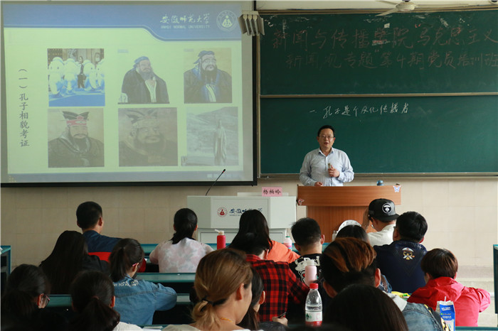 5月3日下午,院党委委员、执行院长杨柏岭给全体预备党员带来了马克思主义新闻观专题第四期党员培训班的最后一讲,所授课程是《文化传统与品质传播·孔子的文化传播实践及现代意义》。通过近两个小时的讲课,为大家呈现了不同角度的孔子形象,丰富了孔子文化传播研究的当今意义,鼓励全体学员成为优秀的传播者、合格的共产党员。