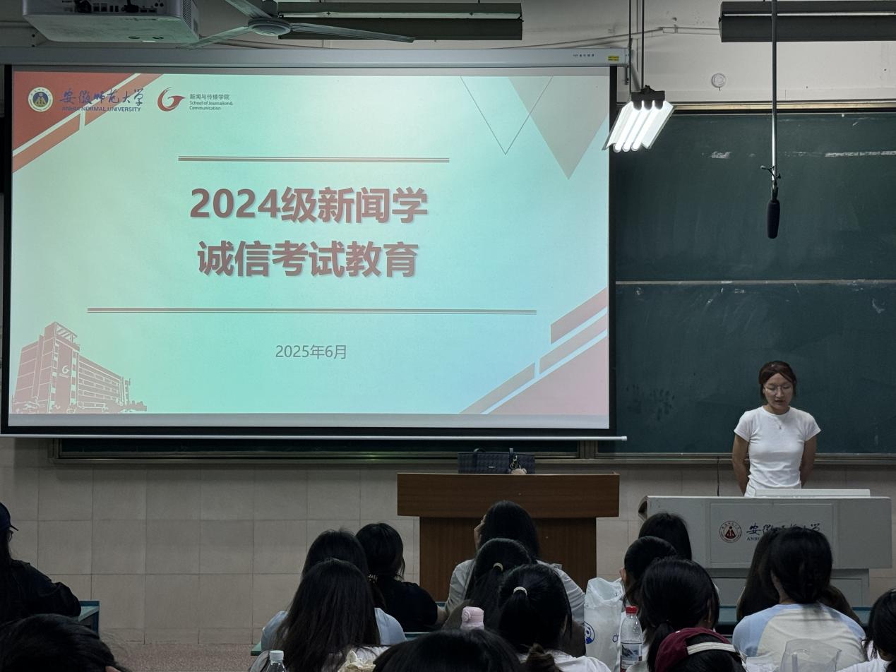 为强化学生诚信意识,严肃考风考纪,营造公平公正的考试环境,6月17日晚,24级新闻学专业在行知楼2050302教室开展期末诚信考试主题班会,班会由辅导员郭锦怡主持。