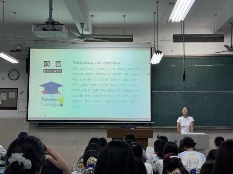 班会伊始,郭锦怡以“诚信是立身之本,人无信而不立”为切入点,结合学生日常学习生活,强调诚信不仅是个人道德品质的体现,更是大学生成长成才的基石。她指出,期末考试不仅是知识掌握程度的检验,更是对学生品德修养的重要考验,呼吁同学们树立正确的考试观,摒弃侥幸心理,以真实成绩展现学习成果。