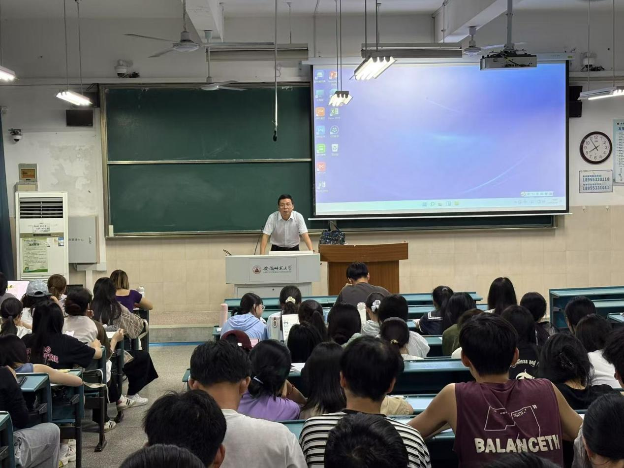 在诚信考试与离校安全环节中,他强调了期末考风考纪。马星宇告诉同学们,期末考试是对同学们学习成果的重要检验,大家要诚信应考,遵守考试规则,杜绝任何作弊行为,他以具体案例详细说明了考试作弊的违纪成本与危害,他希望同学们在认真准备期末考试的同时,也能以饱满的热情和严谨的态度投入到暑期社会实践中,在实践中锻炼自己,提升专业素养。他还以近期校园安全隐患的案例、电信诈骗的真实案例等做了提醒,特别就社会实践中可能遇到的突发情况、安全隐患做了提醒;他最后还解读了新一学年的校历,对离返校的系统登记家长核实、离校前寝室安全事项等提出要求。(图、文/张慧颖)