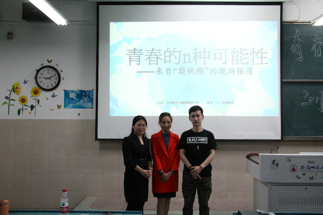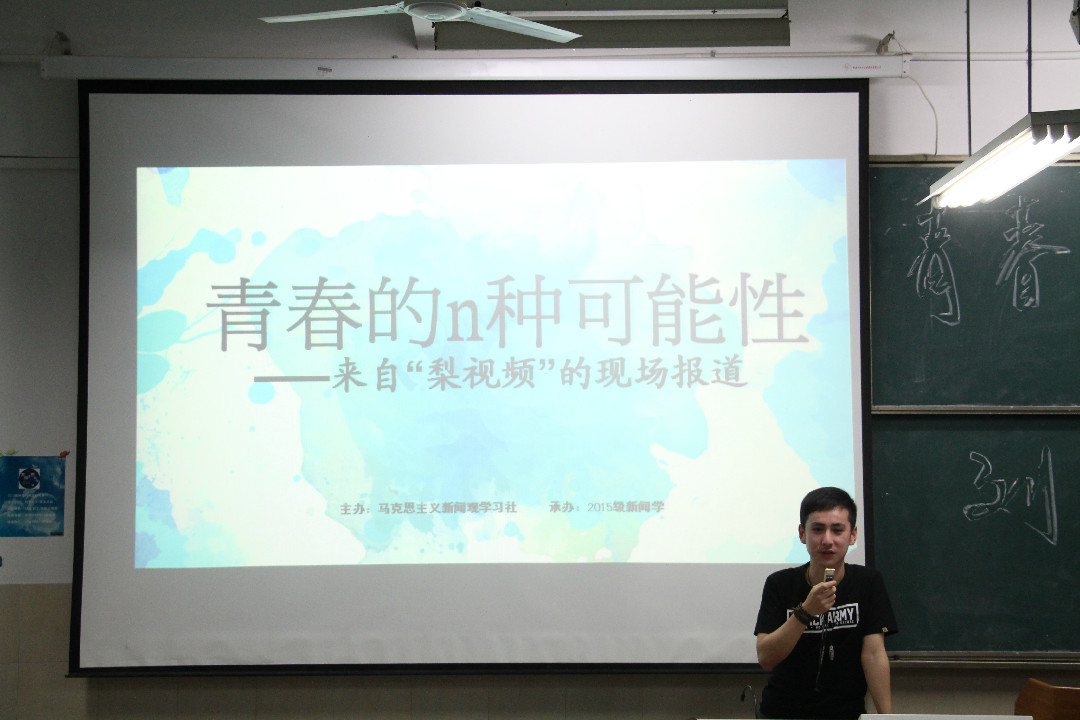 5月9日晚上,2012级播音与主持艺术专业的刘汪洋在行知楼2050304为15、16级新闻学专业和网络与新媒体专业带来了一场来自“梨视频”的现场报道。德赢AC米兰合作伙伴副院长马梅、2015级新闻学、网络与新媒体专业辅导员张虹出席了此次分享交流会。