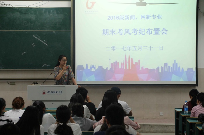 31日晚,在行知楼2030403教室,2016级网络与新媒体与新闻专业班召开了期末诚信考试主题班会。本次主题班由辅导员张雁主持,全体同学参加。