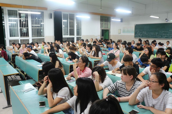 在班会的最后,张雁给大家播放了2017年征兵宣传片《中国力量》的视频,当画面一出现,响起了激昂乐声,各兵种齐齐亮相,同学们纷纷抬头,情不自禁地凝视着屏幕里挺拔身姿的军人与各种现代化的装备,投以深情,投以感动。他们是“青春的偶像,时代的标榜”,“用光荣的梦想,打造新的勋章。”一波高潮落下,迎来另一波新的高潮雄起,同学们心情澎湃,目光里火花四射,像是要把豪情显露、爱国曲更高声奏响,谁都无法阻挡这新时期的力量。