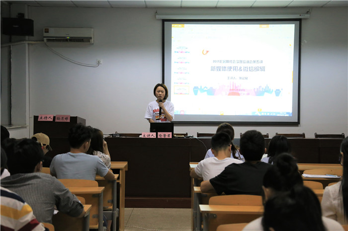 2015级新闻专业的宣智丽作为院学生会新媒体部的副部长,结合院官微和官博的具体运营状况,提供丰富且有价值的经验供各团队参考、借鉴。她还提出,今年学院官微将会帮助符合条件的实践团队推送优质微博,这项工作也会贯穿整个暑期社会实践的过程。而优秀微博需满足以下四个条件:一、主题带有正能量,弘扬主旋律;二、具有团队特色;三、排版简单大方;四、带上微博话题,注意微博@规则、顺序。2015级广告学专业的喻馨君则将微博注意要点划分为四部分,即从“内容的策划”、“整体的排版”、“排版的要点”和“成功的例子”这几个模块来进行细致阐述,使得在场的新传学子收获颇丰。