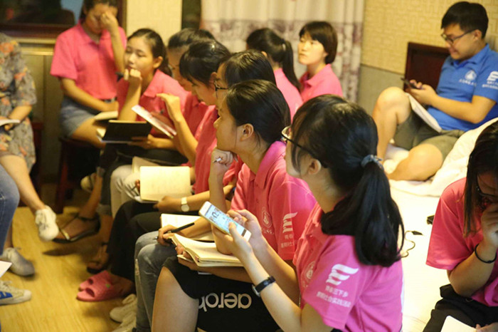 从开始的陌生到后来的熟悉,一次次的开会讨论让队员之间加深了了解,在相互合作中每项工作也有条不紊的推进着。撰写实践策划书、项目申报、立项答辩到经验分享、实践技能培训再到物资采购、确定行程,每项工作有序推进。采访组深入了解采访对象并保持良好联系状态;摄影组创意丰富拍摄出了具有独特风格的宣传视频;技术组每天更新微博展示队员风采等共计发出四十余篇微博,粉丝数达数百个;文艺组与当地社区已做好充分对接,在开展传媒素养培训的同时,有针对性的对学生进行心理健康教育、建军节主题演讲活动、素质拓展活动等特色活动。6月9日,指导老师马星宇和张雁带领两名队员赴黄山徽州区与当地团县委对接,协调好住宿等前期实践开展的相关问题,确保实践顺利展开。