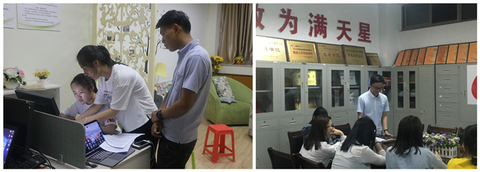 同时,为了保证团队实践顺利开展,指导老师孙月婷、张虹带领部分实践队员于6月15日前往岳西县与当地对接,解决住宿、采访、交通等问题。出征前一天,全队“驻扎”学院,分组进行微课试讲,同时加入了直播元素,队员们共同参与其中,完成最后的准备工作。