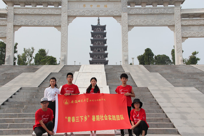 高温、烈日、远途,这些都不足以阻挡队员们一睹钟馗文化园风光的热情。园中集中再现了唐朝灵璧景观的大型钟馗文化主题公园,重现了钟馗的生活情景和人生片段。队员们踏过雕刻着梅兰竹菊的青石板路,登上石阶,馗风塔的全貌展现在我们面前。馗风塔高48米,由地宫、塔基、塔身、塔顶和塔刹组成,地宫就相当于今天的负一层。高耸的塔身象征着钟馗的凛凛雄风。队员们惊叹于馗风塔的恢弘气势,纷纷拍照留念。目前塔内的建设还没有完成,我们看到,第一层展示钟馗形象的展台背景部分已完成建设,背景中的五只蝙蝠栩栩如生。
