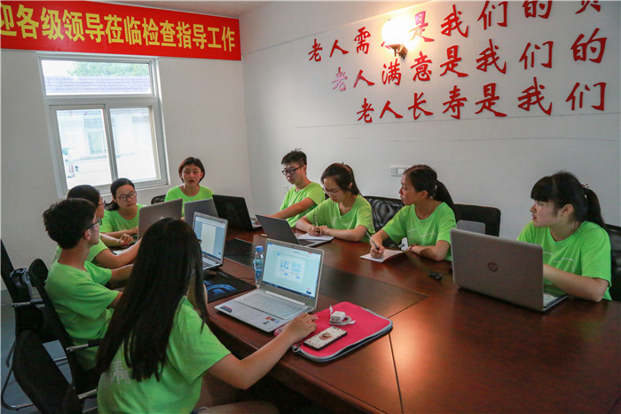 不知不觉中已经日落西陲,在和爷爷奶奶们一一道声晚安后,小组成员在会议室集中召开了集体会议。在初步了解了养老院的基本情况的基础上,在小组组长的带领下根据具体情况调整了之前的预定计划,制订了“采访、编辑、整理”三步走策略,分小组从多个角度分别进行,每个人分工明确、各司其职、干劲十足。