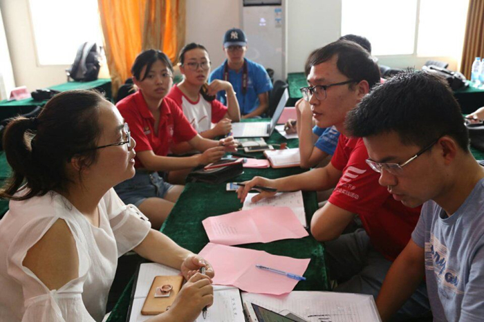 支教组的队员一上午都在与十几岁的孩子们及为他们报名的家长打交道,青少年宫三楼挤满了欣喜于培训班的开设的人们。笑声与问答声的交融、大学生与初中生的相处、家长与小老师们关于课程的讨论……各样的场景,在镜头下反映出最先期待的成效的初步实现。招生名额满员后,截止报名,支教组组员分类整理学员信息并整合。