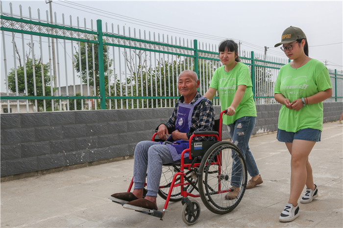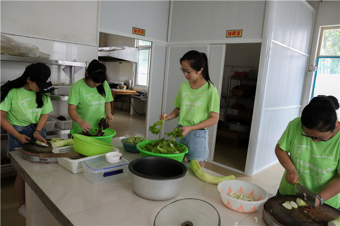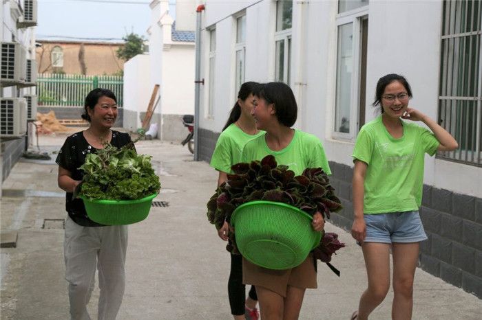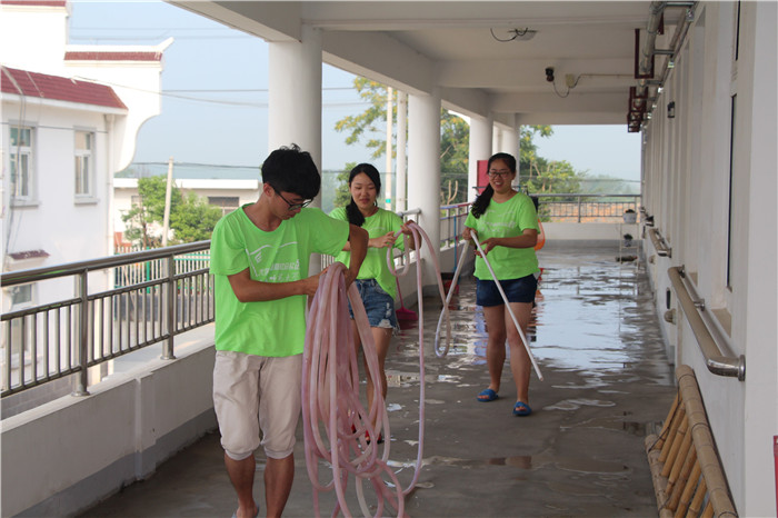 既是针对大学生的暑期“三下乡”工程,又怎能不深入生活、不体验生活呢?团队成员按照之前的分组,一组在后厨体验生活,从摘菜洗菜到切菜,从打扫餐厅到刷洗地毯,没有丝毫抱怨,没有叫苦喊累,只是默默地做着自己的任务。一组则在清洗老人们所在的楼道和栏杆,劳动之余不忘与老人们说说话,打打招呼。院子里都是学生辛勤劳动的场景,不同的工作,同样的笑语晏晏,队员们从不认为这是强制性的工作,确是甘之愿之的学习与体验。实践路上,新传学子在不断成长。