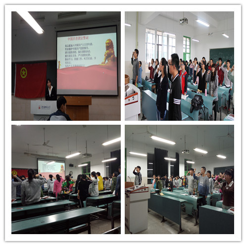 班会伊始,vwin德赢ac米兰官方网的“厚德、重教、博学、笃行”八字校训映入眼帘,一张张团史介绍PPT,使同学们触摸到了中国共青团发展的生生脉络;一帧帧从黑白到彩色的画面,令同学们看到了安师大走过的漫漫长路。“我志愿加入中国共产主义青年团……”,同学们集体起立,目视前方,紧握右拳,以高昂的热情重温入团誓词。16网新专业还播放了红色电影《我的长征》,以红军王瑞的长征回忆为线索,让大家更直观的感受长征精神。团史校史的学习,让社会主义核心价值观的根基,在同学们心内的土壤里更深地扎根。