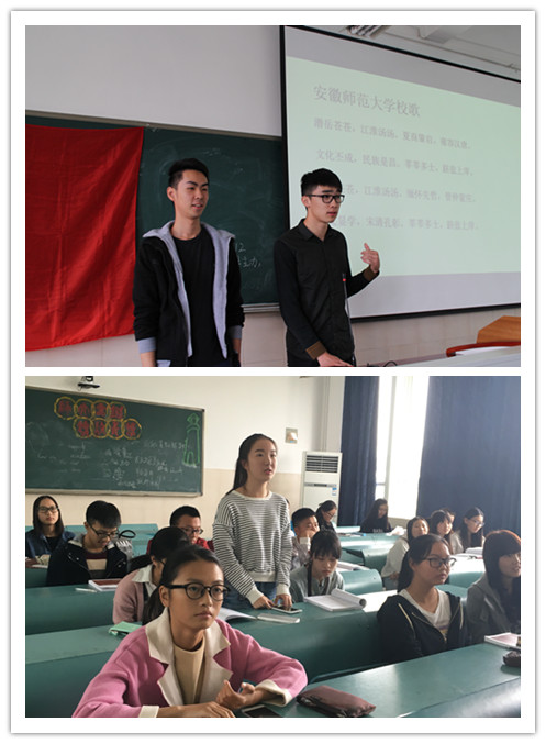 “我们是五月的花海,用青春拥抱时代……”“潜岳苍苍,江淮汤汤。夏商肇启,雍容汉唐……”。作为一名vwin德赢ac米兰官方网的共青团员,团歌校歌的学唱有助于增强同学们的责任、担当意识。学院15级的殷武、鲁超、吴梦迪分别教唱了校歌和团歌。他们不厌其烦地耐心教导使同学们热情高涨,认真学唱。同学们歌声嘹亮,唱出了热情与积极向上的力量。