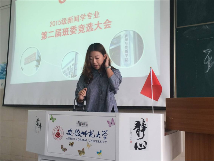在会议上,首先由刘小容代表上一届班委发言。刘小容既感谢了一年里同学们对班委的包容理解,也对即将任职的新一届班委表达了祝愿,并介绍了竞选流程。随后,17位同学按照抽签顺序依次登台发表竞选演说。17位同学中,有8位是原班委成员,9位是新竞选的同学。每位同学都需在两分钟内围绕着自己为什么竞选班委以及当上班委后打算怎么做这两个主题来阐述。17位同学各有特色,台下的同学听得津津有味,为演讲同学的风采所吸引。