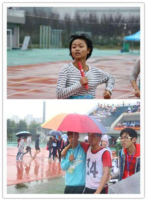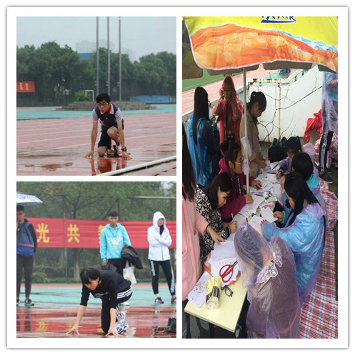 运动会期间阴雨绵绵,不少同学衣服湿了半截,可他们一直坚守在自己的岗位。有运动健儿们在比赛场地热身以饱满的精神去迎接比赛,有值班同学负责维护现场秩序,有活跃于记者团、新媒体部的同学穿梭在明亮的绿荫操场内只为定格一瞬的精彩,有在院会宣传部的同学在高高的观众席上搭起了小台不停地写稿,有参加院会生活部的同学散场后值班捡垃圾清理会场,有广播站的同学在主席台播着一条条振奋人心的加油短消息,还有看台上的同学一直观望着扣人心弦的比赛,时而为运动员们呐喊助威,热情高涨。