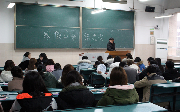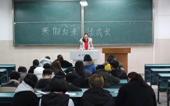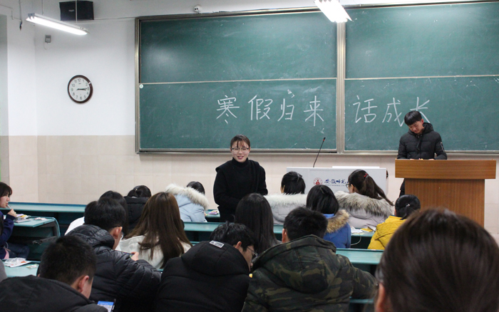刘维婷同学向大家讲述了自己在假期里通过网络视频学习了一些关于网页的知识,为本学期学习网页制作奠定了一些基础。张锦星同学,则向大家分享了一例“乌龙事件”,自己错把爸爸说的“下饺子”听成了“下电视剧”。主持人陈建军作为男生代表分享了自己寒假考“科目三”却因停电被冻僵的经历。还有同学向大家介绍了自己家乡特色的过年习俗和在广告公司模拟实训的经历与收获。活动最后,班长樊文洁补充了一些开学以来的班级事务以及与同学们的学习生活密切相关的通知。全场气氛热烈融洽,同学用幽默的语言及有趣的经历让大家在阵阵欢笑中体会到寒假的意义。