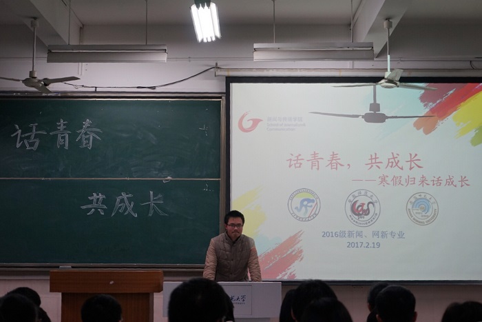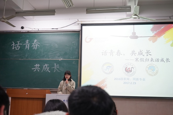 寒假已过,新学期,伴着新面貌。都说假期生活如牛奶般充满了惊喜与酸甜,每位同学都有切身体会。为交流同学们的归来感受,2017年2月19日晚7:00,16级新闻与网新专业的学生齐聚于2040403教室,趁着早春的月光,举办了新学期的第二次班会。本次班会由网新班骆贝贝与新闻班丁纪共同主持。