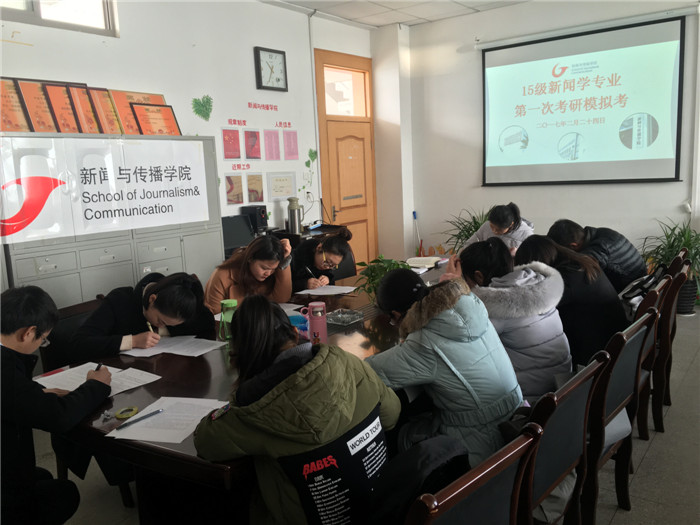 2月24日上午,2015级新闻学专业部分同学在院学生会办公室进行了首场考研模拟测试,辅导员张虹参加了此次模拟考试,并监考。