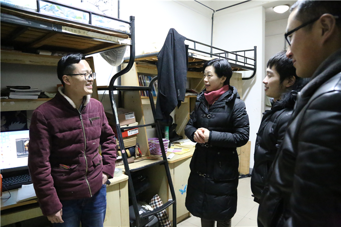 关切的问候,温暖了冰冷寒冬,善意的微笑,仿若和煦春光。查寝不仅是杜绝安全隐患的方式,更是为院领导、辅导员与学生提供了交流的机会,拉近了师生间的关系。老师们深入到学生的生活环境中,也更能了解他们对待学习、学校、社会的态度。文明校园,需要师生共同创建,融洽的师生关系,更需要师生相互理解相互尊重。(文/院会宣传部付泽兰 图/石景威 叶静)