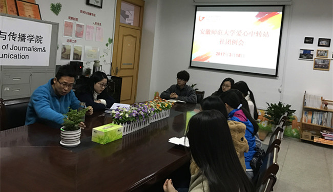 3月15日,爱心中转站全面布置新学期工作。院团委副书记马星宇老师、2016级辅导员张雁老师,爱心中转站会长周美霞、常务副会长朱朵、副会长张慧贤以及各部门代表参加。
