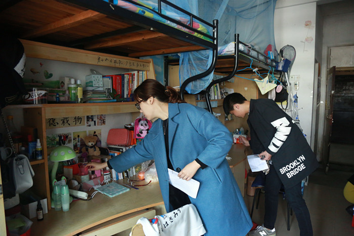 为有效排除宿舍火灾隐患,切实保障学生宿舍用电安全。4月7日至8日,孙月婷同实习辅导员徐龙静、刘家存,学院生活部学生干部及部分班委一起深入走访6栋和18栋学生宿舍,在交流谈心的过程中,进一步巩固安全教育的成果。