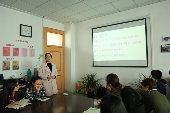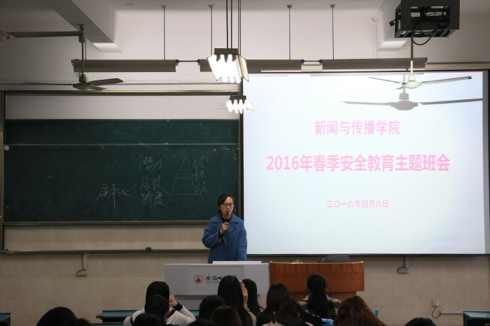 4月6日,新闻、动画、广告、摄影四个专业分别在2010505教室召开春季安全教育主题班会。春季是安全问题的多发期,安全隐患的根本在于同学的安全意识欠缺。孙月婷在班会一开始以当天安徽师大共青团微信公众号推送的文章《严爱之—火灾猛于虎,安全重于天》为导入,她指出幸福师大需要每一位师大人自觉参与建设,全校师生齐抓安全教育,以对违规行为和学生的“严”体现对全体学生的“爱”。
