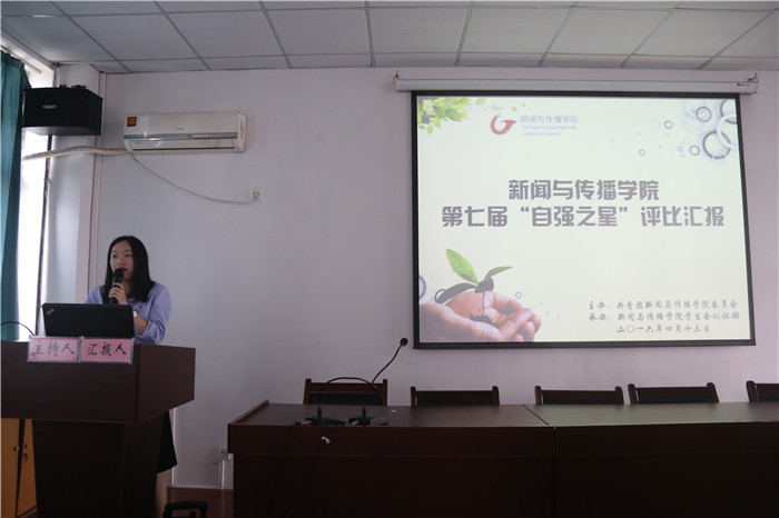 此次汇报会共有10位来自三个年级不同专业的新传学子,要求每位选手在6分钟内采用演讲与PPT相结合的方式向评委、观众清晰明了地展现自己的自强奋斗历程。14时30分,评比会正式开始,选手们按照事先抽签的顺序依次上台进行汇报。不同的经历自然拥有不同的故事,台上汇报的选手们用他们真挚动情的话语向在座的每个人分享了一段段艰辛坎坷的奋斗史。来自13空乘的陈博群讲述了自己荆棘满布却又永不言弃的创业之路,从“创青春”全国大学生创业实训大赛最佳团队奖到“科大讯飞杯”安徽省首届互联网创业大赛优秀奖,他用那份坚持与韧劲践行着那句话:有梦想就要去实践,只有在实践中才能找到自己想要的和缺少的,创造出一条属于自己的道路;来自13文管的陈谭谭诉说了自己三年勤学英语,从一名非英语专业的普通学生转型成为新东方英语口语老师的励志历程,同样来自农村的她,付出了这一切仅是为了早日医治好失明的姐姐,带姐姐看看外面的世界;而14新闻专业的吕汉东则向大家分享了自己高考后借助安徽经视《我要飞得更高》节目筹集的善款艰难上大学的故事,家庭的困苦没有击倒他上大学的决心,家庭的打击没有阻碍他前进的脚步......虽然十位选手来自不同的地方,遭遇过不一样的困难挫折,但他们的身上都拥有着一个共同的精神——自强不息。
