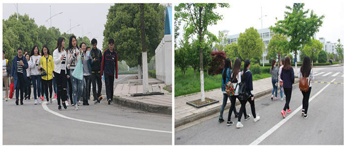 诗歌诵读会结束后,四个专业学生围绕师大校园春日美景开展徒步健走活动。健走以南体为起点,途径建人路、和平大道、民主大道,全程近2公里的环校绿色健走一路欢声笑语,大家精神抖擞、热情洋溢,呼吸着新鲜空气、欣赏着如画美景、畅谈青春岁月中的点滴生活。平日繁忙的学习生活会使人渐渐忽略生活中的美好。通过行走,途径那些平日并不经常涉足的小路,观赏那些叫不出名字的小花。一所大学予人的情怀除了丰厚的学术氛围、难忘的老师同窗,还有校园里的一草一木,草木之景的美除了本身之美,更是与青春相伴的成长之美。健走师大是行走,更是向广大师生宣传读书、爱书的理念。读书使思想丰盈,行走使生活健康。同时,身为师大学子,同学们的宣讲内容更包括了师大路名的讨论,学校发展沿革等,荣校爱校的理念贯穿始终。