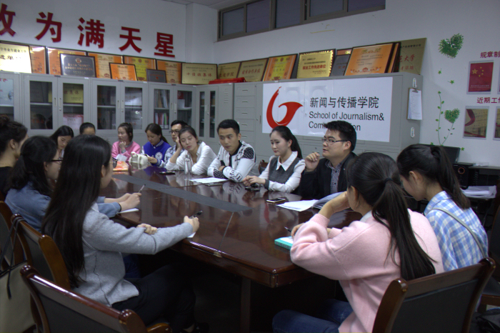 近日,2013级播音与主持艺术II专业考研经验交流会在院学生会办公室举行。来自2012级播音与主持艺术II专业保研、考研成功的三位学长学姐分享了自己的考研经验和心得,其中马维超被保送至南京师范大学,程欣和谈诗琪分别考入上海体育学院和华中师范大学。本次考研经验交流会由陈德洋老师主持。
