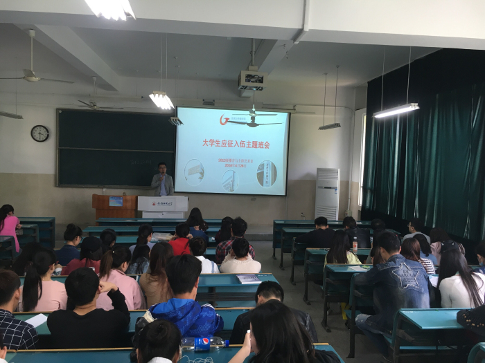 当天下午,陈老师又来到各班级,为同学们开“大学生应征入伍主题班会”,会上陈老师对大学生应征入伍相关事宜做了详尽的介绍,包括预征入伍的对象和范围、登记及报名流程、材料初审、学费补偿或贷款补偿、入伍补助、各类优惠政策以及注意事项等。通过动员会和大学生应征入伍主题班会,班级同学了解了入伍的相关事宜。对于大学生入伍,同学们可以根据自身情况进行考虑,主动联系家长,听取一下他们的意见和想法,自愿入伍,为国家建设奉献自己的一份力量。(文/王彤 图/梁姗姗)