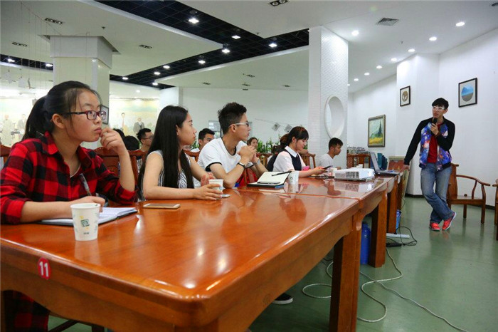 张文溪以精美的PPT的形式就“与人相处之道”展开讲解,讲解过程中,学姐不断抛出问题来与现场同学进行交流,精彩的提问与作答,使现场气氛逐渐活跃起来。她用“心理学中的abc”“生活中的ABC”等有趣的心理学知识来和同学们一起探讨学生干部可能会遇到的困扰,结合两个案例指出作为心理委员,要学会与人沟通,并且给出了有效沟通的秘诀,同时分析了回避沟通的原因。