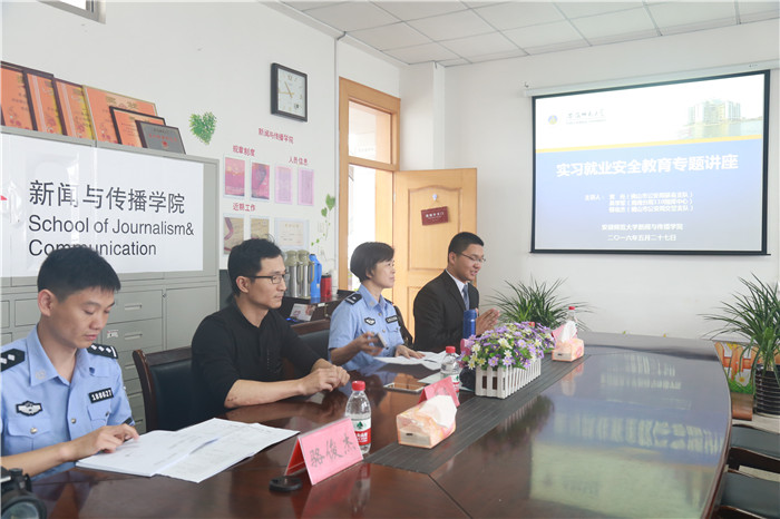 转眼又到了毕业季,实习就业期间,大批学生离开象牙塔的庇护,步入社会独自打拼。在租房开始新生活期间的人身财产安全及面对毒品等诱惑时的自我约束,已经成为全社会都颇为关注的焦点。作为禁毒专家,黄亮警官向在座同学普及了毒品的危害和一些新型毒品的相关知识,通过“每100人中就有一人吸毒,进入强制隔离戒毒所后成功戒除的概率只有5%,80%以上的刑事案件都与吸毒有关”等一系列数据对芜湖和佛山等地严峻的禁毒形势做了分析,提醒同学们远离毒品,避免或减少去KTV,夜总会等场所。谈到近来较为热门的电信诈骗,吴学军警官与同学们分享了许多真实案例,更现身说法,提醒大家要做到“三个一律”保障自身安全。骆俊杰警官则通过他在我校期间的细致观察提醒大家要“杜绝无照驾驶、无牌摩托车”,还亲自示范了走在人行道上应如何避免“飞车抢夺”,呼吁同学们遵守交通规则,珍爱宝贵的生命。