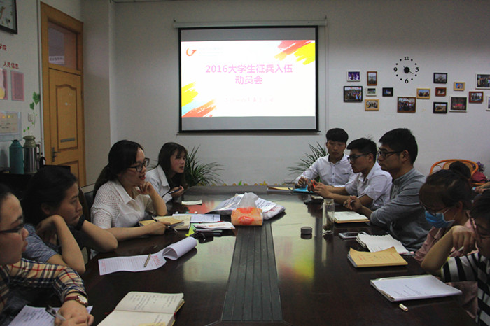 为激发广大青年学子的爱国热情,鼓励和动员大学生们参军入伍、献身国防事业。5月24日下午,德赢AC米兰合作伙伴2014级新闻、广告、动画专业在学院三楼会议室联合召开了“男儿从军志,学子报国情”主题班会暨大学生征兵入伍动员会。会议由辅导员孙月婷主持。三个专业各班学生党员、入党积极分子、班委和学生干部参加了本次动员会。