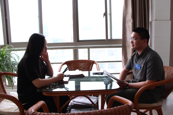 笔试过后的面试考场设置在四楼东侧休息区,吴利亚对部员的一对一面试。模拟招聘面试,主席问的四个问题:你最具创新性的经历是什么?你最失败的经历是什么?在列车上,被人贩子盯上女孩向你使眼色求救该怎么做?1+1=几?虽然同学们对这几个问题的回答不尽相同,但在这一轮面试中,每个人都收获了感悟与思考。