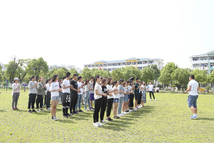 素质拓展训练起源于二战时期军队、以提高心理素质为主要目的,是一种兼具体能和实践的综合素质教育。它以运动为依托,以培训为方式,培养人们乐观的心态和坚强的意志,本次素质拓展活动由户外教育协会的老师、同学担任训练员。在进行简单的报数游戏之后,52名同学被分成了6队。依照主训员的吩咐,每个队需确定队长、队名、队歌、口号及队形5项事项。经过一番简短地讨论之后,6队依次展示:“HERO队”、“三缺一队”、“队长说得都队”、“青春行队”、“宝宝说得都队”、“666队”,新奇独特的队名汇集了同学们的幽默与创意,高亢响亮的口号展现了新传学子的青春与活力。