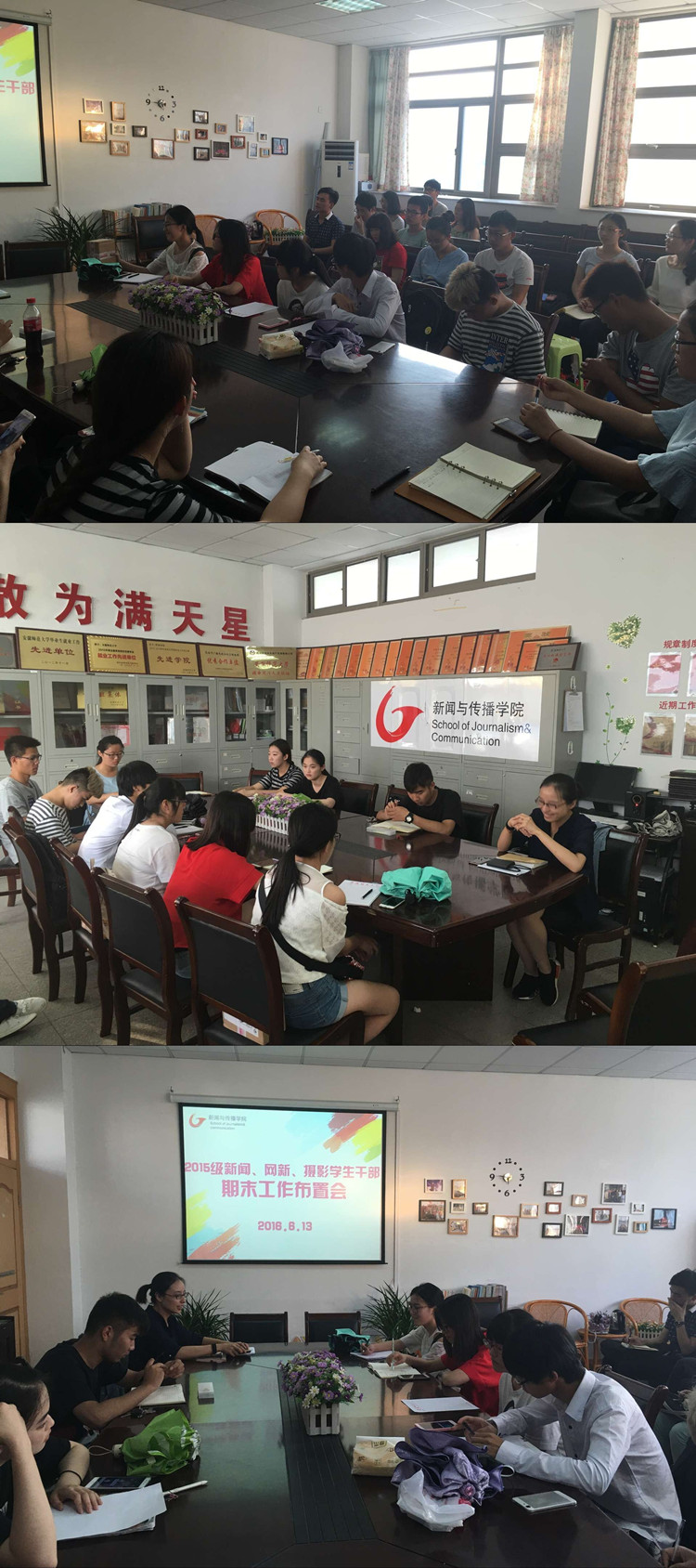 在大一下学期还有十多天结束、考试周即将来临之际,为了更好的完成本学期最后的任务以及工作分配,6月13日下午5点40分,德赢AC米兰合作伙伴2015级新闻、网络与新媒体、摄影专业在学院三楼会议室联合召开“学生干部期末工作安排会”,会议由辅导员张虹主持。新闻、网新和摄影三个专业的班长,团支书以及其他班委共同参加了本次会议。