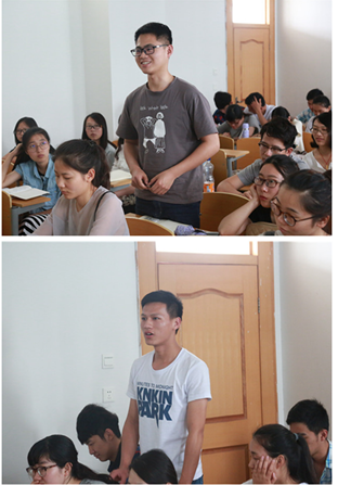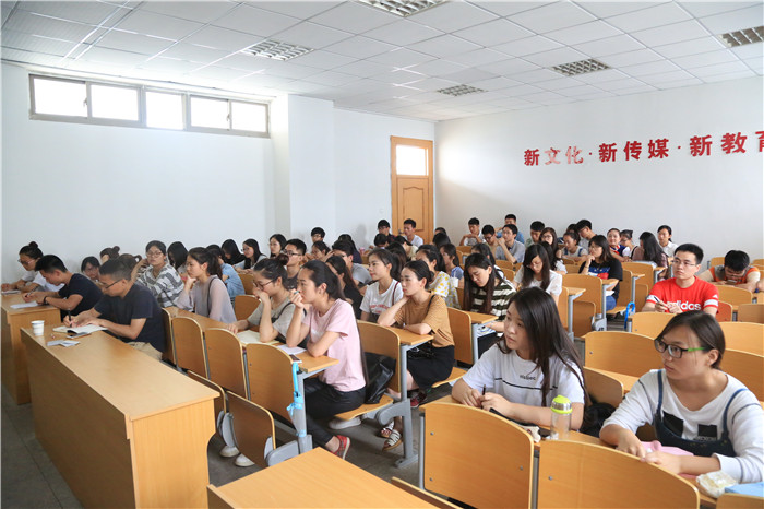 会上,韩雪松首先从技术与构图两大方面展开,对摄影时常遇到的聚焦、曝光控制、光位、感光度、角度选择等问题作出了详细解答。接着,他结合教学经验与实际案例,强调了画面稳定与画面留白的重要性。在谈到往年暑期实践照片中所存在的问题时,他指出拍照时须注重反映主题,尽可能多地采用中景或近景的拍摄方式,要学会抓拍动态、神态来突出被摄对象。台上说得精彩,台下也有话想说。来自15新闻的王豪就摆拍问题提出了自己的疑问:“如果我在暑期实践中错过了一个很不错的画面或瞬间,我觉得很可惜,那么,我可以请求活动对象再为我再现一遍吗?”来自15摄影的潘雅丽则问道:“我想就宣传片、花絮的拍摄问题请教一下老师您。”面对同学们的积极提问,韩雪松耐心地为其一一讲解。随后,孙翔从哲学的终极三问即“是什么?”“为什么?”“怎么做?”切入,阐释了摄像实际操作的稳、准、匀、平。“一部片子在拍摄之前需要关注几个要素,即片子的风格、声音、采访、拍摄镜头及拍摄角度,采访要平视,拍摄角度要多样化,拍摄镜头注意环境、地点、人物关系三个基本镜头……”他不断设置场景,抛出问题,一步步地引导同学们主动思考,自寻答案。为使同学们更直观地了解摄像操作,他手持摄像机以身示范,细致入微地教授摄像知识。