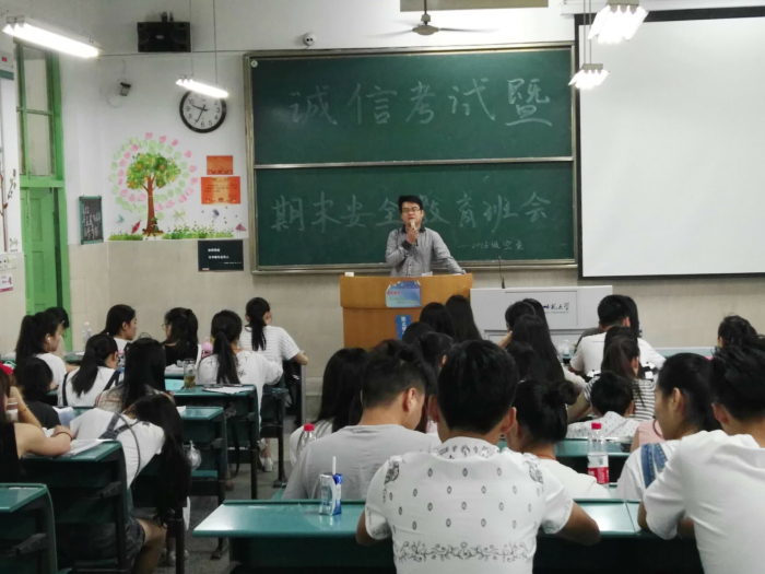 安全警钟长鸣,安全关乎一切。结合近期高校的一些安全事件,陈德洋反复叮嘱同学们考试期间要特别关注自己的身体健康,注意人身安全与财产安全;在饮食方面,陈老师表示希望同学们为了身体健康加强运动,饮食注意安全卫生,多去卫生达标的地方吃饭,不要吃一些卫生不达标的外卖;用电及卫生安全方面,他表示学期即将结束,为了同学们能安心、顺利的完成考试,要注意用电安全,规范用电行为,排查用电安全隐患,并且及时清扫寝室,保持宿舍空气流通;交通安全方面,外出面试、回家等要注意交通安全,在校不要购买或者骑燃油助力车。