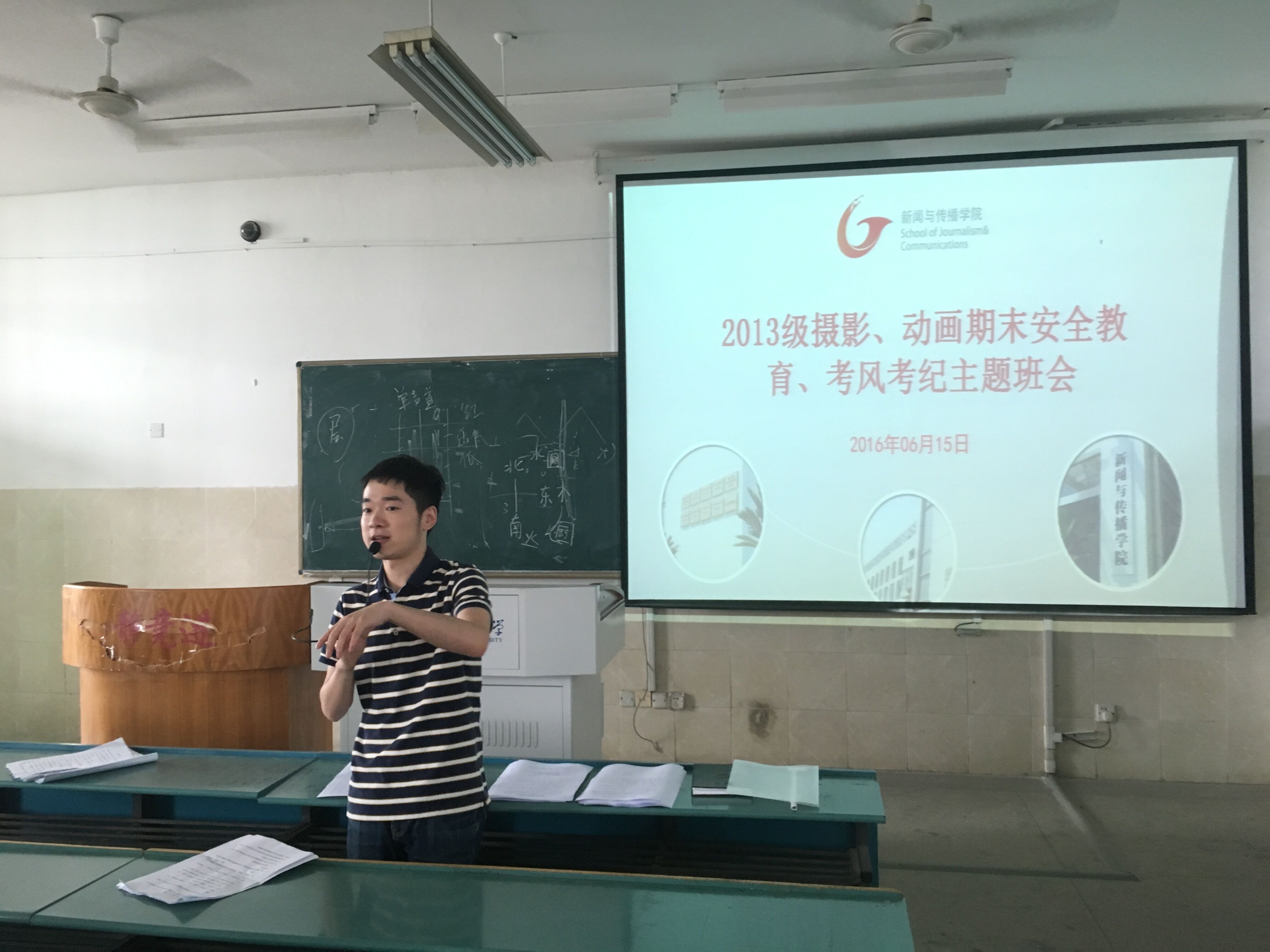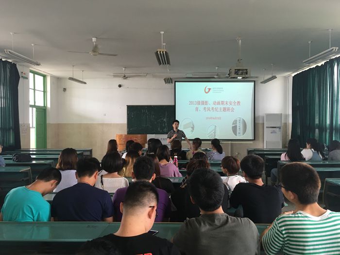 期末考试和暑假即将来临,为认真贯彻学院有关期末考试和学期末的各项安全主题教育的工作要求。2013级摄影、动画专业于6月15日在教学楼2010605由辅导员王旭主持召开了严肃考风考纪,加强安全教育主题班会。