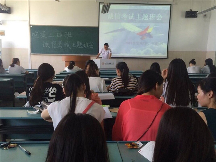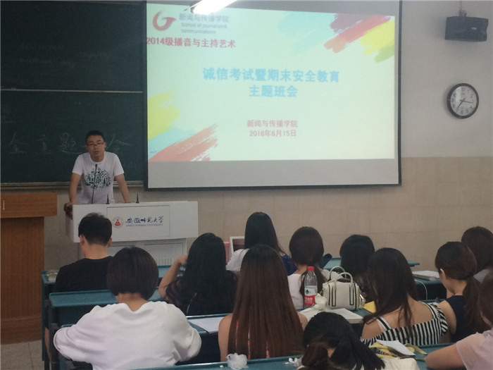 为了营造良好的学习氛围,体现公平公正的考试原则。2016年6月15-17日,辅导员马星宇老师分赴各班主持召开本学期期末诚信考试暨安全的主题班会。就迎接期末考试和加强期末、暑期安全开展主题教育。马星宇结合学校近期安全事故就宿舍安全用电、离校登记、晚归不归强调了大学生在校安全归结于学业安全的重视性;他还结合学校近年来学生考试违纪受处分情况重点讲解了诚信考试的重要意义。