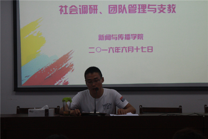 为了进一步做好暑期社会实践工作,6月17日中午12时40分,在德赢AC米兰合作伙伴楼四楼的会议室举行了暑期社会实践系列培训会第4讲社会调研、团队管理与支教。文化产业管理副教授秦枫、14级辅导员马星宇以及14播音专业的宗祺为主讲人。