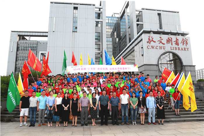 启动仪式的最后,梁燕、戴佳芳和与会的学院党政领导班子为23支校(院)级重点团队正式授旗,并与全体暑期社会实践团队于敬文图书馆前留念合影。