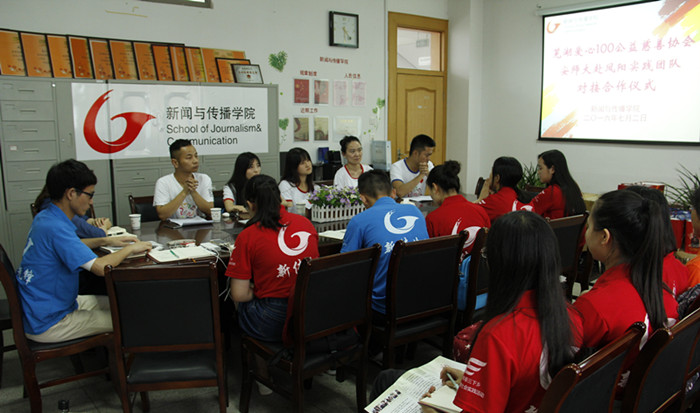 7月2日下午,我院赴凤阳“聚焦小岗精神,建功美好乡村”暑期社会实践团队与芜湖“爱心100”公益慈善协会在学院三楼会议室举行合作对接仪式。双方围绕“普及传媒素养,爱心扶贫教育”这一主题,就如何运用科学有效程序对扶贫对象实施精确识别、精确帮扶,如何发挥青年大学生在助力扶贫和公益服务活动的力量和作用等问题做了探讨,并就本次实践活动的合作方式达成了初步意向。